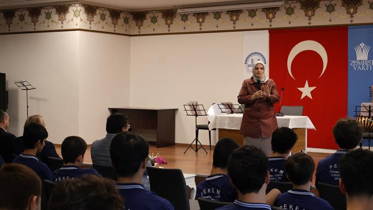 Konferansta Pendik Kur'an Eğitim Merkezi öğrencilerine hitap eden Genel Müdürümüz Sedide Akbulut, Diyanet İşleri Başkanlığının son dönemde eğitimle ilgili en önemli hizmetlerinin başında Kur'an Eğitim Merkezlerini açmak olduğunu belirtti. Kur’an Eğitim Merkezlerini ilim ve irfan merkezleri olarak niteleyen Akbulut, gençlerin manevi kimliğinin oluşmasında bu merkezlerin önemli bir yere sahip olduğunu kaydetti. Akbulut, konuşmasında Kur’an Eğitim Merkezi öğrencilerini, Türkiye'nin geleceğine sahip çıkan gençler olarak gördüklerini ifade etti.
